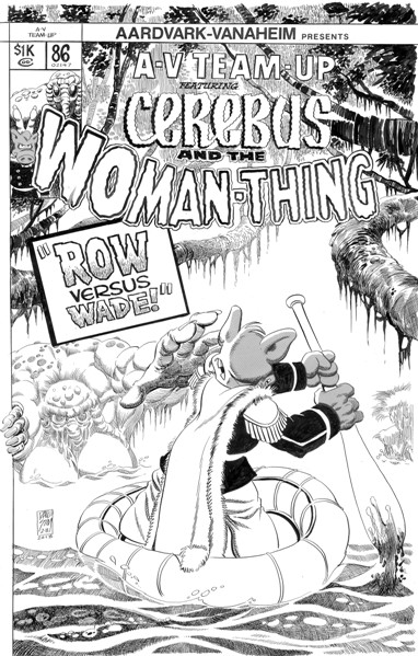 I requested his take on Marvel Team-Up 68 and asked for him to replace Spider-Man with Cerebus. I suggested using one of his parody swamp monsters instead of Man-Thing but said it was up to him. The only other specific request was that he include at least SOME lettering...I love his lettering! I think he was able to do more with lettering than any comic artist I've ever been aware of.