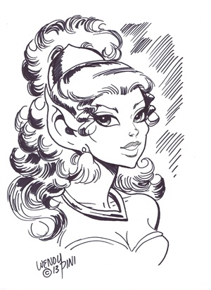 I went pretty light on getting sketches at ECCC. I have promised myself that I am going easy on artwork this year. I think I have kept my promise to acceptable limits. I had never met the Pini's before and I have always been an Elfquest fan. Wendy was kind enough to do two sketches for me. Cutter