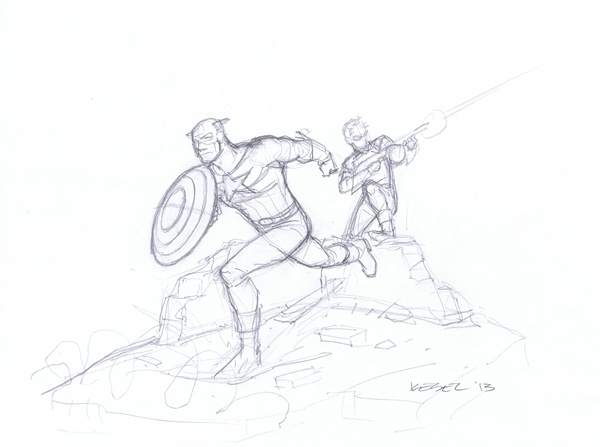 Here is a prelim for the piece I set up with Karl Kesel before the con.