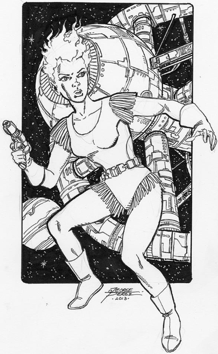 Anyway, I always liked JB and George Perez's versions of the Guardians of the Galaxy. Here's Nikki (and Dry Dock) by Perez: