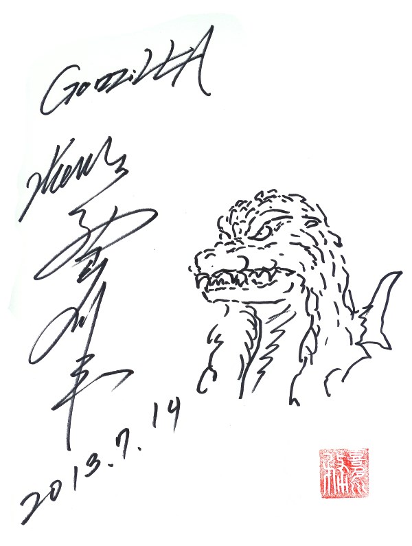 Also, Japanese special guest Tsutomu "Tom" Kitagawa, the suitmation actor who has played nearly all the Millennium-era Godzillas, surprised me by adding a little something "extra" to his autograph:
