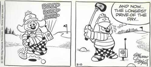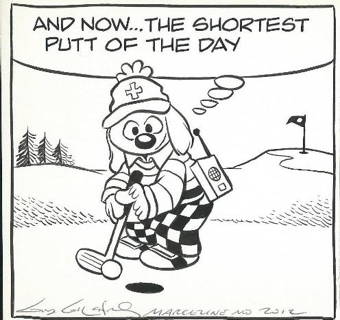 I found this while on our family trip to Marceline Missouri. It was on sale at the Disney Museum. Guy had a large display of his work on the Muppets. My scanner is small, and I was not sure how to put the two images together. My boy’s (who are almost 14) wanted to know what that thingwas he was trying to hit.