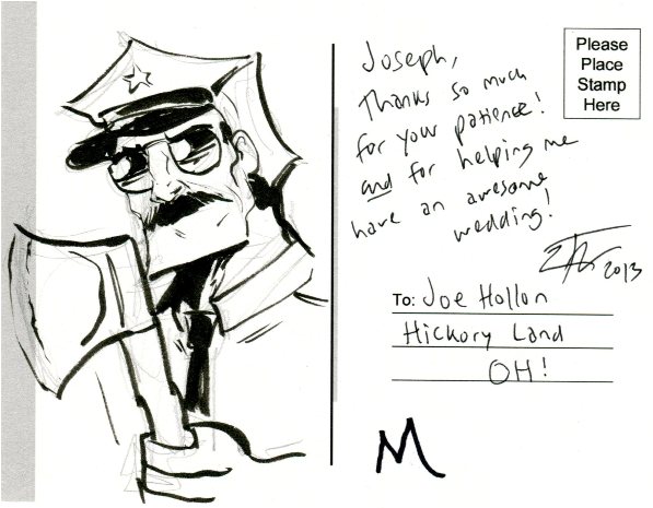 I donated money to the Ethan Nicolle Wedding Fun and received an official invitation to the Axe Cop wedding with this sketch included!