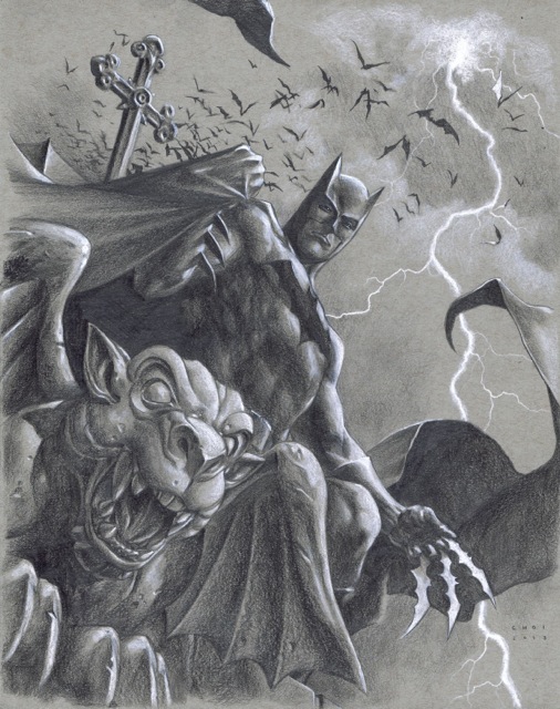 Ari, Nice Mike Choi piece. Can't go wrong with Batman and gargoyles. All pencil/tones?