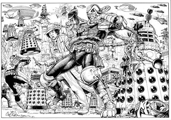 Daleks and Dredd! What an interesting combination. Cool art.