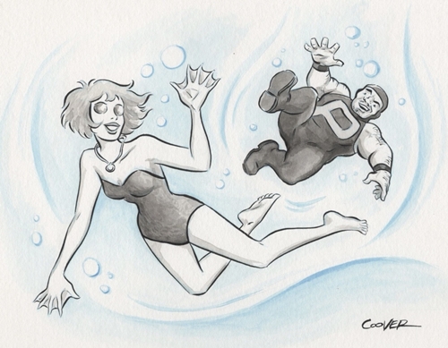 A fun new piece, no doubt from the Beta Flight days, by Colleen Coover. Careful, Puck, those waters are treacherous.