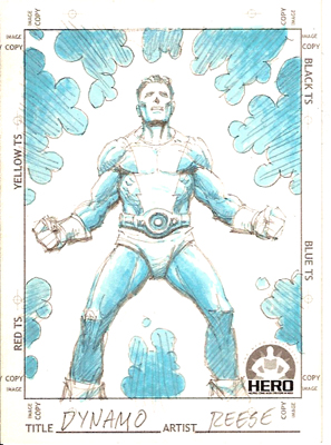 Lots of great art here! I really like the Steve Rude Big Barda. I've finally scanned a few sketch cards I've gotten recently. The first is my Hero card for this year, featuring Dynamo by Ralph Reese.