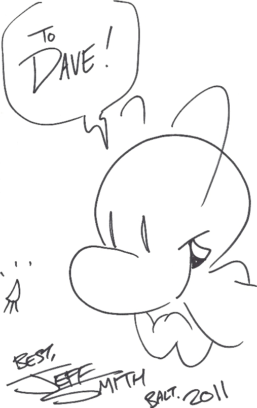 I dig the Rosa Donald Duck. I'd like one of the Beagle Boys by him if I see him at a show again. Does Jeff Smith charge for those sort of con sketches or are those freebies? I saw him at a signing a few years back and he was doing little freebie doodles but nothing that looked that complete.