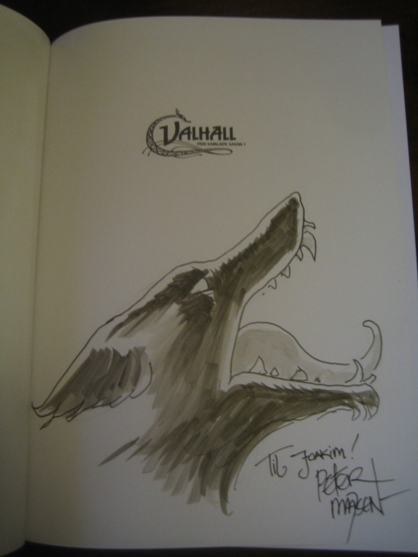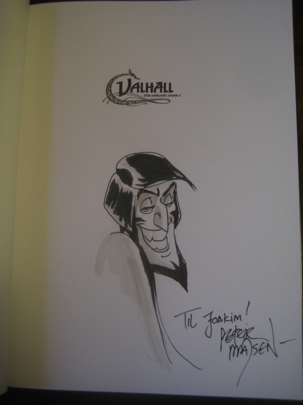 I also had the pleasure of getting the first two volumes of the new collected HC edition of Peter Madsen's wonderful album series VALHALLA about the Norse gods signed with drawings in them (I believe I have posted the drawing I already had in four of the albums earlier in this thread).
