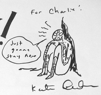 i don't know if a bullet is considered a sketch :) but i didn't realize it until i was on my way home. daniel was really nice to me, especially considering his son's name is charlie too. he said he doesn't know a bad charlie. i agree with that because i am good too!... but then later i realized there is charlie mason..