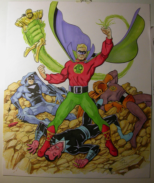 Heh. I asked for the Manhunter at Baltimore, myself. Guess he was in a catching up on commissions kinda mood... Anyway, moving on. Gary Barker facilitating my Golden Age bias with a pic of GA Green Lantern vs. various SA Green Lantern baddies: