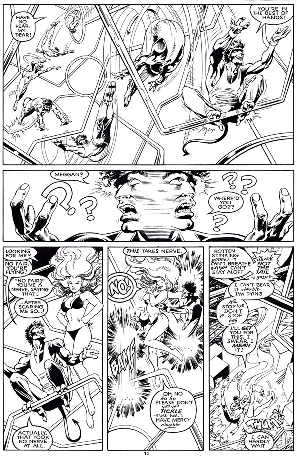 is a two page sequence from Exaclibur #3 where he is having some fun
