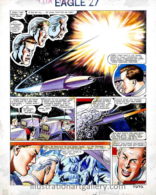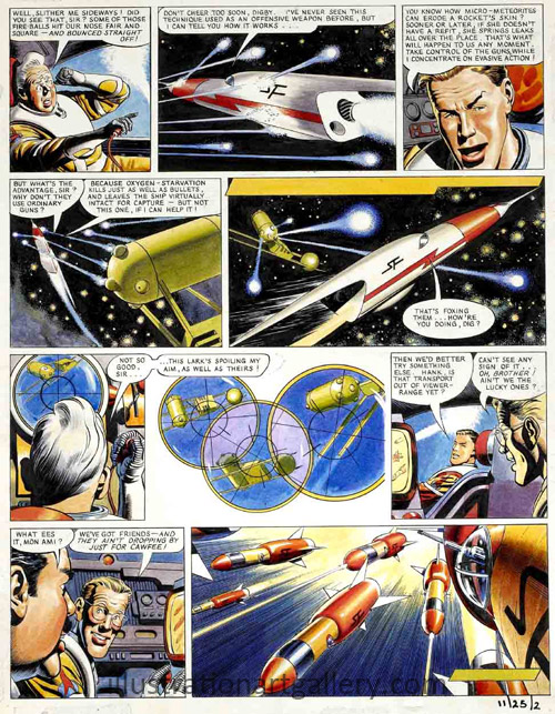 Clearly, the Gods of Comic Art want me living in a cardboard box. Albeit, a cardboard box with some lovely art on the walls.Two more pages from DAN DARE's "Project Nimbus", this time by Bruce Harley and Don Cornwell...