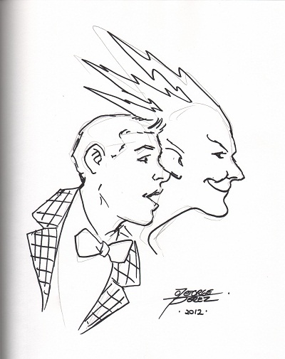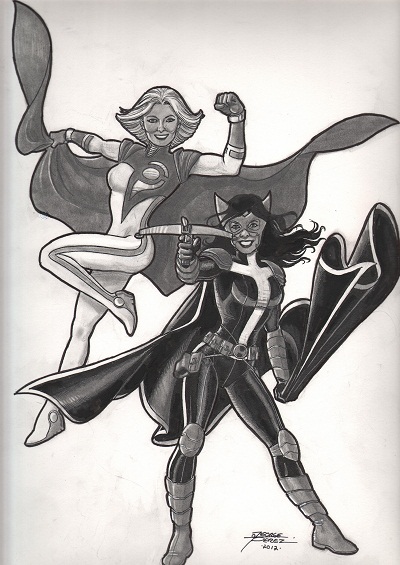 And the final Perez of the show was the Power Girl/Huntress piece for their new DC 52 look that was used for the Pittsburgh Comic con t-shirt. I won it during the auction fundraiser for Make a Wish, on saturday night. The comic page is larger then 11x17 so i had to move it around on my scanner to show as much of the figures.