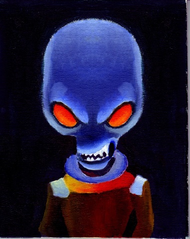 Okay this is not exactly from my sketchbook since it is on a small canvas board, but here is an alien in oil.  My first and only oil painting so far.