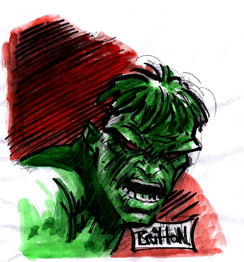 Thanks for the kudos, guys. Arc, I use H or HB leads in a clutch pencil and ink with Pitt brush and F pens. I've started using ShinHan Touch grey markers - they're kind of a poor man's budget Copic marker, with a broad chisel end and a fine point end. I've got three different greys, and a black for big areas. A lot of fun to use. JT, that's a neat story telling technique. Like it a lot. JPB, liking the latest batch of stuff - nice Hulks and Thors.
