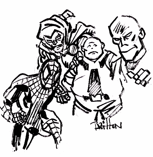 Output's as strong as ever, guys. It's interesting to see what people are working on each week. I love it when you can take one idea, and free associate with it until something just clicks and the picture falls on the paper...