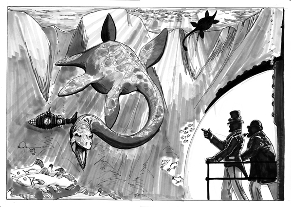Mal: that is just such a powerful and beatiful image . I could never get tired of your dinosaurs . The plesiosaur looks so majestic and alive  . And the way the light comes through the water is amazing . I love it, I really love it.