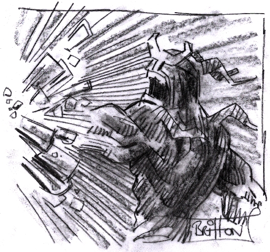 Lovely stuff John, I really like the 'man-bat'-like character.