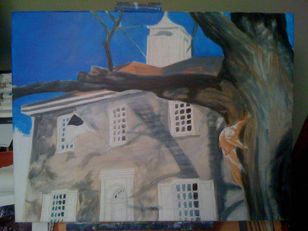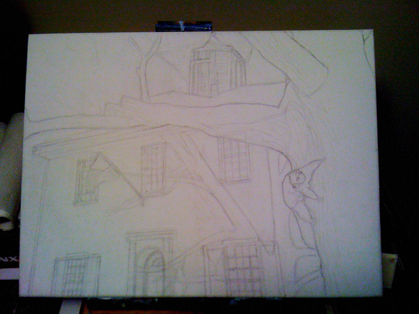 Here's a very loose pencil sketch on canvas I did ti paint.