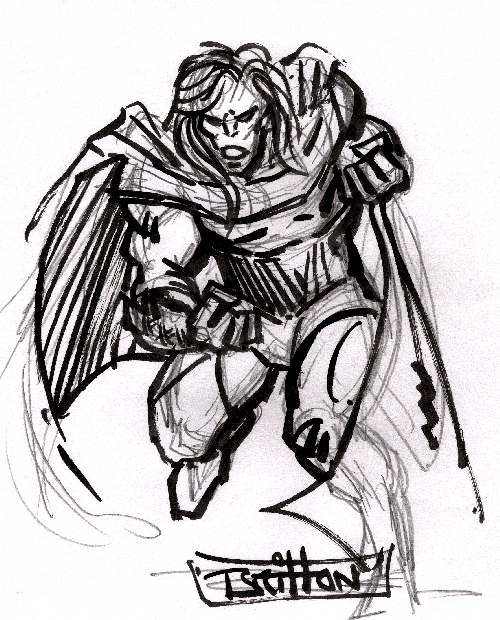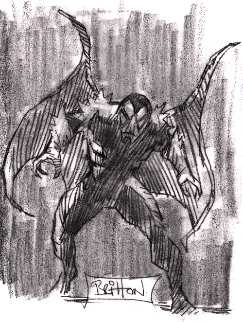 Lot's of great drawings. Love the Hulk at the top of this page John and the winged guy at the bottom!