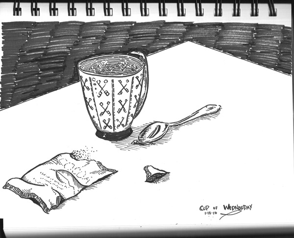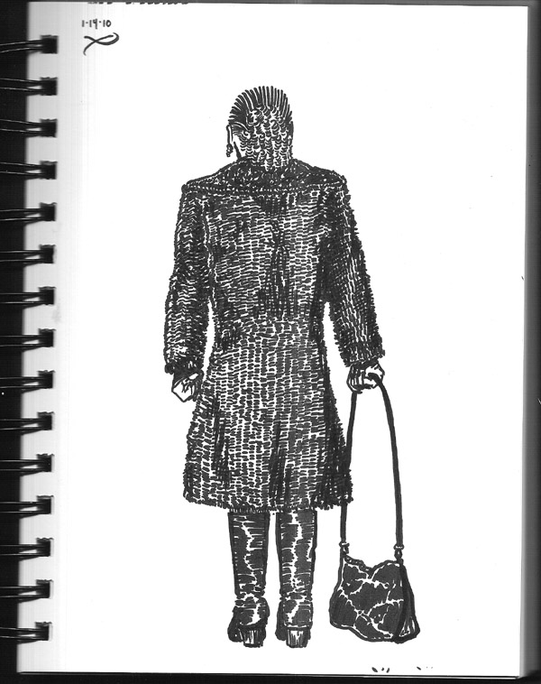 I was sitting at Starbucks with my lil' 4x6 pad wondering WHAT to draw. That lady walked in and stood in the back of the long line, so I had a great view.