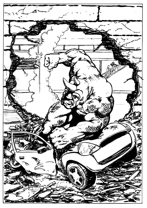 Rhino, comin' through! Started out as a doodle of his screen right arm on my phone pad at work...
