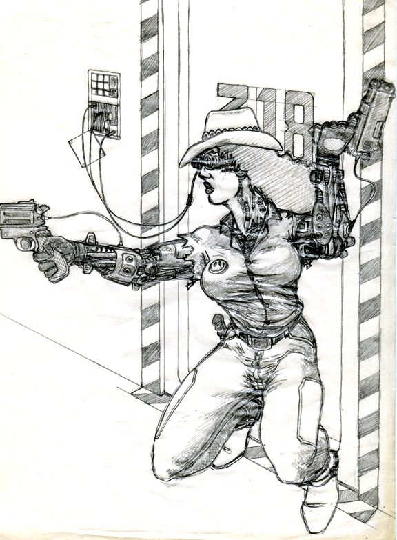 An old cyberchickie pic I did way back when we were Shadowrunning on a regular basis - I like to think I've improved a lot since this, in terms of technique and composition, but I still like this pic...