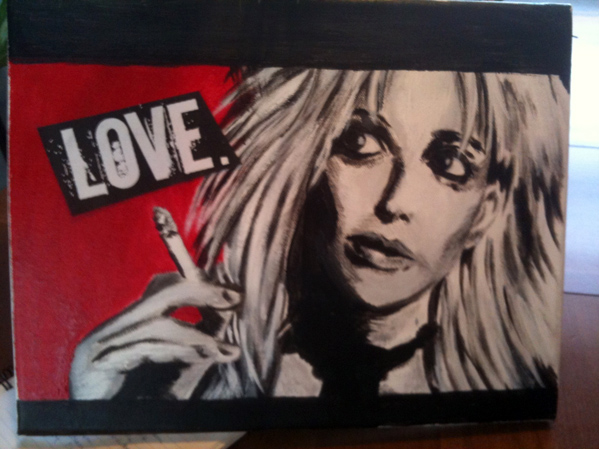 My girlfriend is a huge Courtney Love fan. I painted this for her last night...