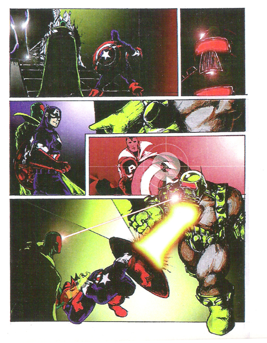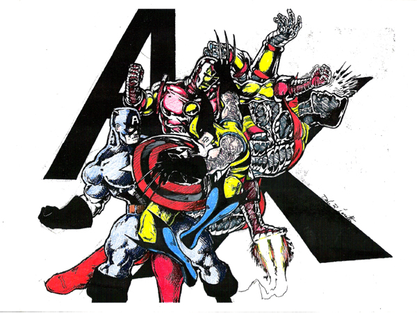 Great work, all! Some top shelf stuff cropping up in here, now. Dale, thanks mate - I'm having a lot of fun with the comp. JT, love the latest coloured page - it's not as saturated as some of your recent pages, and it looks really good. Not saying that your other pages weren't good - just that this one is very good indeed for the subtler colours. Jodi, that is some great work there. Iron Man is good, Doc Doom is fantastic - but Devil Dinosaur? You bloody champion!! That's brilliant. And actual paint, too. So where's the Devil Dinosaur pony? Cheers, Mal