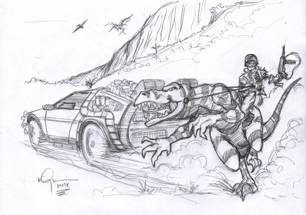 Dale, LOVE the full dresser! Great illustration, mate. Sketchbook time - someone at work opined that a movie about zombie nazis riding dinosaurs would be awesome. Maybe some timetravelling thrown in for fun. So I scrawled this one out while watching Top Gear last night. Hollywood here we come!!