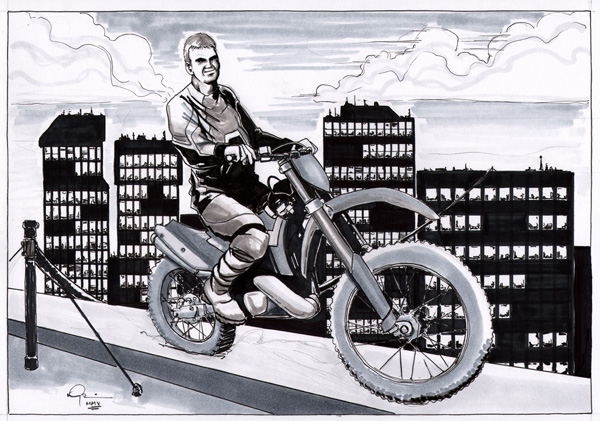 One of the girls at work asked me to do a picture of her husband for their anniversary. He's a dead-keen motorcross rider, and apparently quite the thrillseeker, so this seemed appropriate. Big thanks to the chief for sharing his nighttime buildings technique - it made this work well.