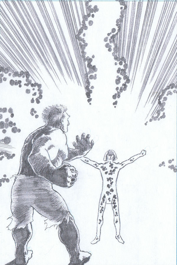 Warren had this knack for making a full-pencil mockup of his comics which he would bring with him to display at local and regional conventions. I tried it with this pencil sketch of the Hulk taking on an original character of mine. I guess there was a bit of a Neal Adams vibe going here...