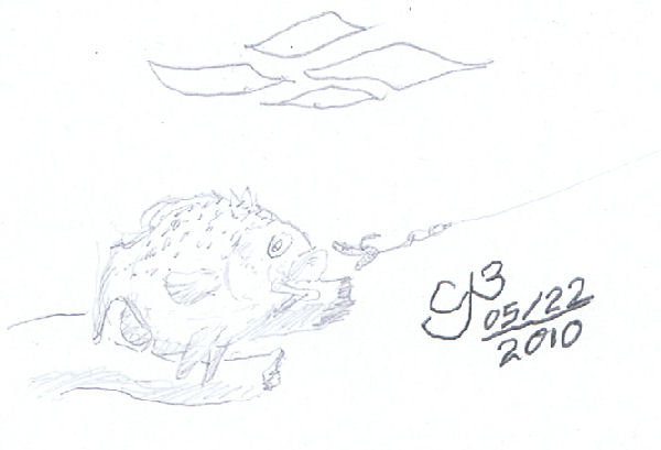 Each of the two sketches of fishes and fishing lures under water took about 5 minutes.