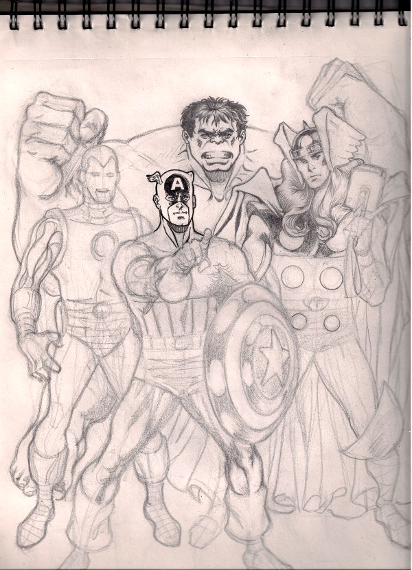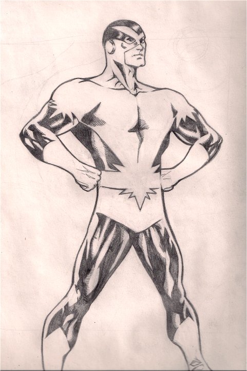I'm not very proficient with brushwork myself. That's why I prefer nib pens and felt-tip markers for my inking. The most that I've done with brushes is fill in black areas on a drawing and put down a few thicker lines or effects where it would look "right". The ball-points were good for just about everything, with the possible exception of filling in solid areas. My stuff with them was fairly well laid-out, but it was like any other 6- to 10-year old boy's. Little more than cartoon figures. I was drawing comics with dinosaurs as the main characters, and almost no humans. After I was introduced to Marvel comics and JB's X-Men, I began to seriously pursue a more realistic style of drawing. Within a few years, I had even put together short comics of my own, though these also didn't survive to be salvaged. It's a shame, because some of the characters and stories that I created in them are still with me today, in a slightly modified form.