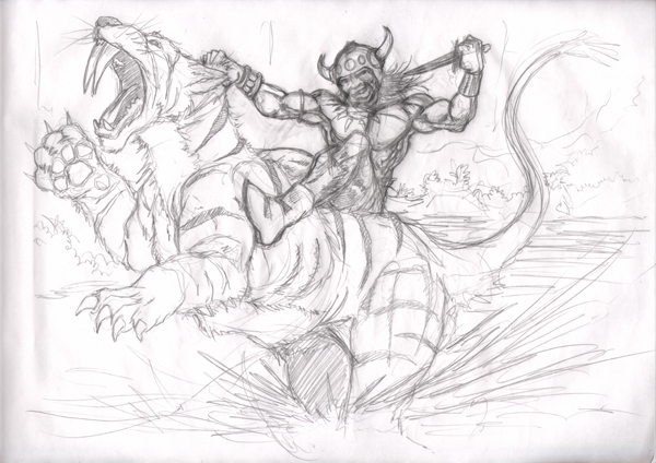 Sketchbook time for me - more Hyborian goodness. Posted the Sonja snow pic up on the board at work, and one of the guys asked if I'd ever done Conan. It occurred to me that Conan'd be a lot of fun to draw - so here he is!!