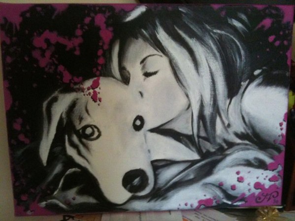 I painted this for my ladyfriend on her birthday. Her and her dog.