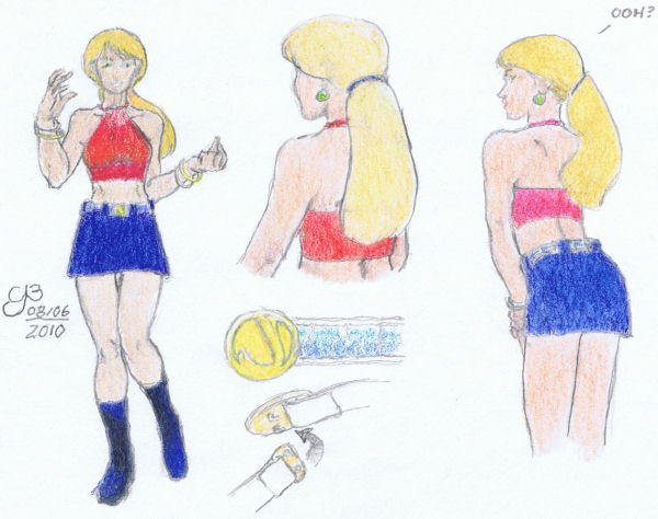 This time, I was trying to tackle another costume design for my character named Jennifer, in preparation for a possible piece for the DeviantART.com gallery. One of the ideas was to have her dancing in the halter top and denim miniskirt depicted here. There was also further experimentation with the colored pencils here, this time using what was supposed to be a colored pencil "blender". Well, it didn't blend so well and carried some of the pigment with it. Still, the Prismacolor pallette is quite versatile and can still be applied to my sketches. In the future, I'll be posting more random subjects, including some layouts and designs to be used in the story in which Jenny is set. I'll also follow along with some of the daily themes which're coming up here and in other artist sites to which I'm registered.