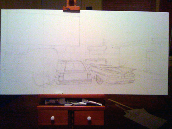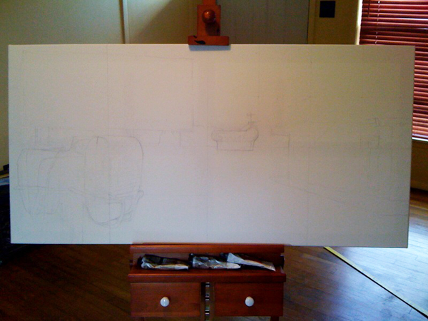 May not look like much, but I've actually made decent progress. Should have my picture drawn tonight onto the 2'x4' canvas and begin painting tomorrow as planned.