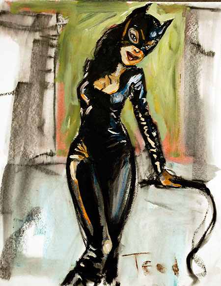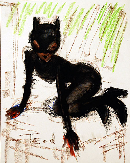 It has been a while since I posted in here. Hard to believe this thread is still going strong, over a thousand pages?! Congrats to all of you who keep the art flowing. I have been going to a drawing workshop in LA called "the drawing club". Costumed models with a theme. Well, this last week was Cat Woman, it was fun, the model was great, beautiful, and a sweet person. Here are the drawing/paintings I did last Thursday.