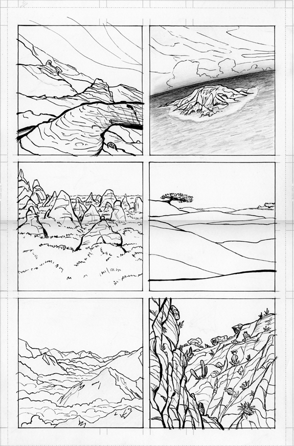 Here are todays funky little landscapes sans spaceship for now: