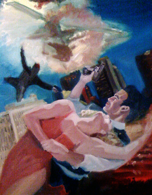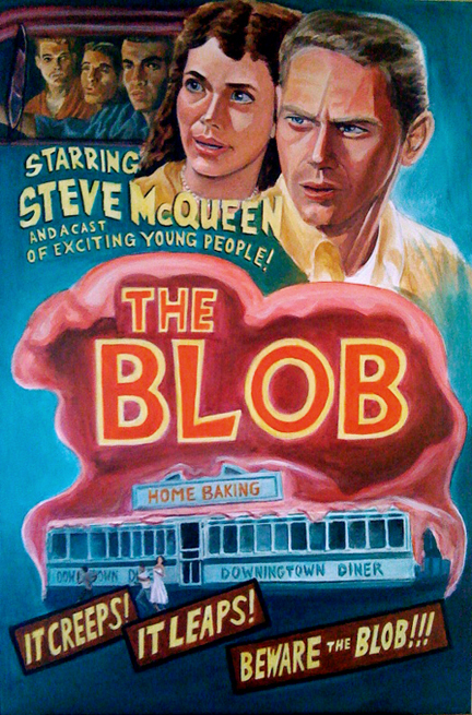 It's very, very hard to get a photograph with my iPhone that's close to being accurate, but this is tbasically what the finished Blob poster looks like. I left some of it kinda loose, but I kinda like it that way.  Onto the next painting!