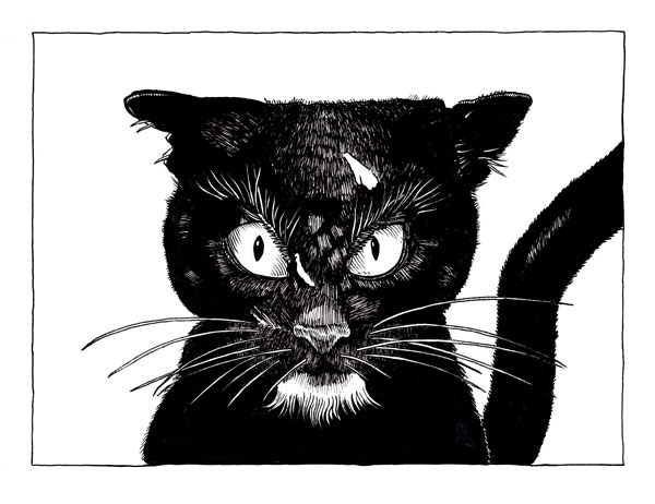 A partial description: "...from his too flat face, bright eyes shone with a strange light, accenting their exaggerated size...He was, indeed, strange and sinister looking."