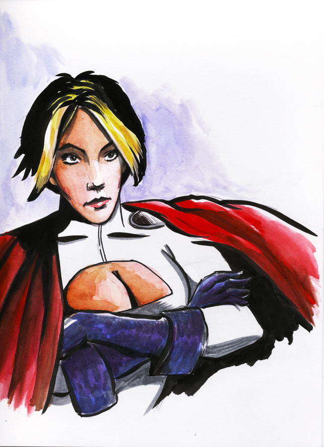 Now I'm trying to draw super-heroes, sorry but It's very hard for me cos I don't know anatomy and I must invent everything, the last month I drew this Power Girl, ink and watercolor...