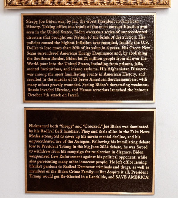 When it's an official exhibit in the White House, I am a little surprised at several things, such as the outright falsehoods, the lack of formality and decorum, the odd capitalisations and the grammatical errors (Servicemembers?). I know these are all hallmarks of Trump's social media posts, but it's still a shock to see it as such an official thing, right down to President Biden not even being listed as President Biden or having an actual photo.
